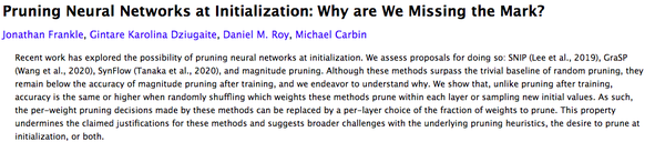 几种新技术可以在初始化阶段剪枝深度神经网络。尽管它们的性能优于随机剪枝,但仍未达到pos训练基准